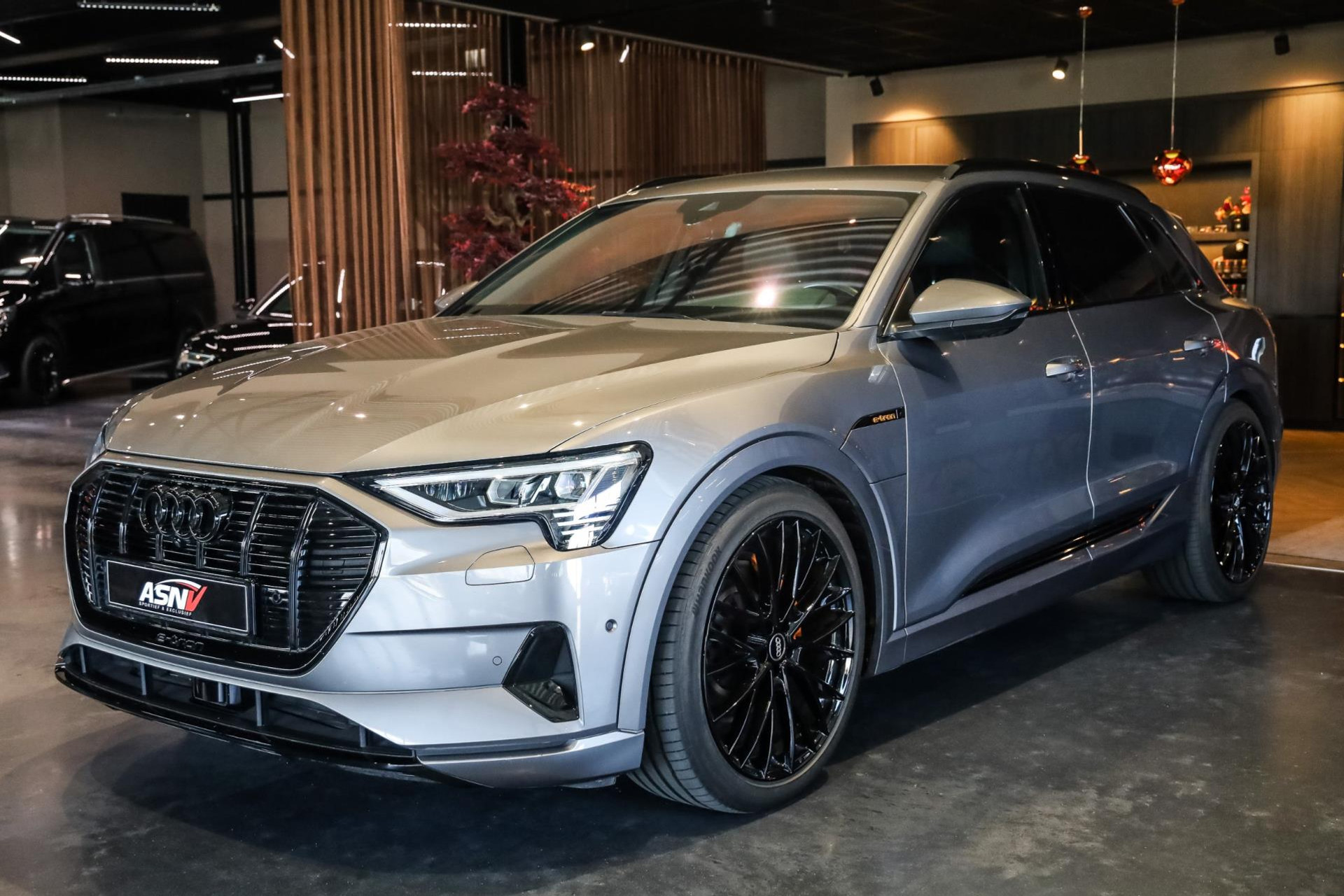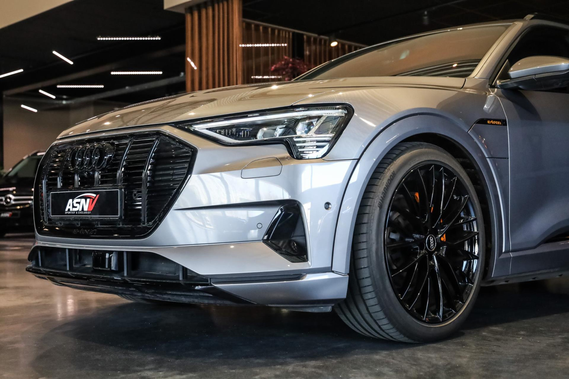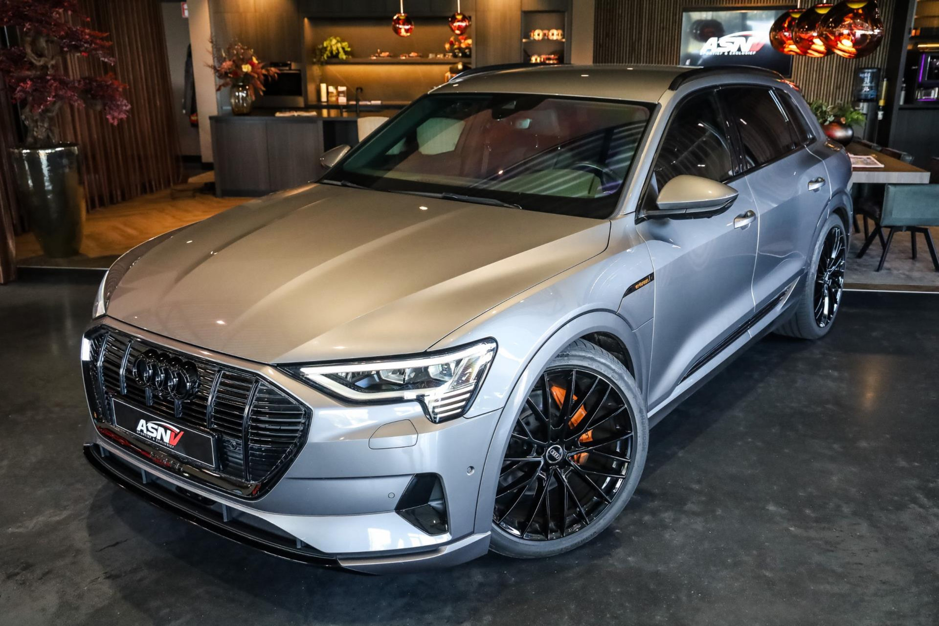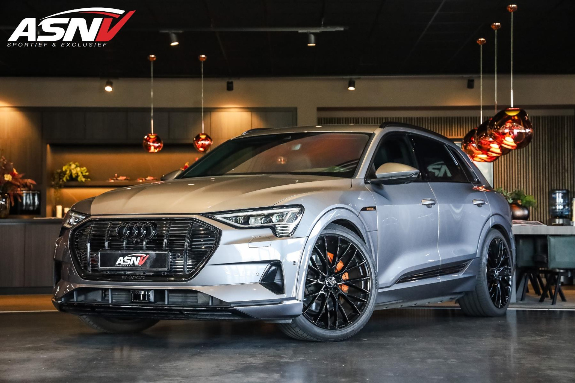 Voertuig is achteraf voorzien op wens van de klant van 22'' MAK wielen in hoogglans Zwart, Chameleon voorruit, Getinte zijramen voor, Oranje remklauwen met E-TRON opschrift, 2 cm verlaging op de luchtvering, Grille en logo's in hoogglans Zwart, S-Line achter diffuser.