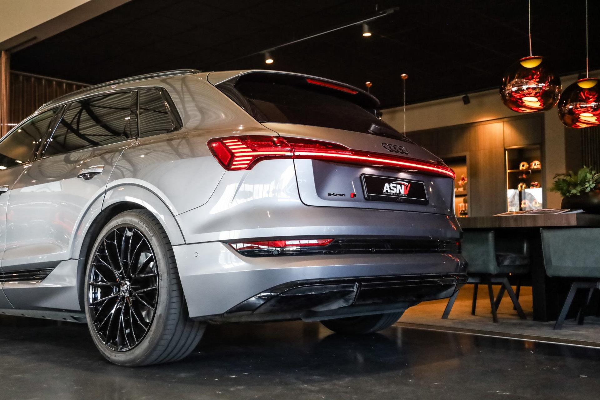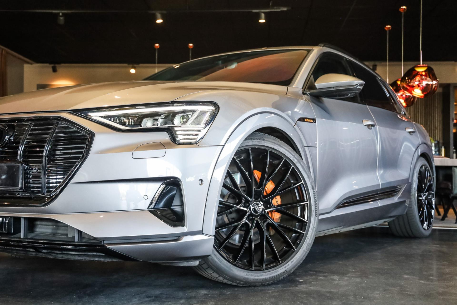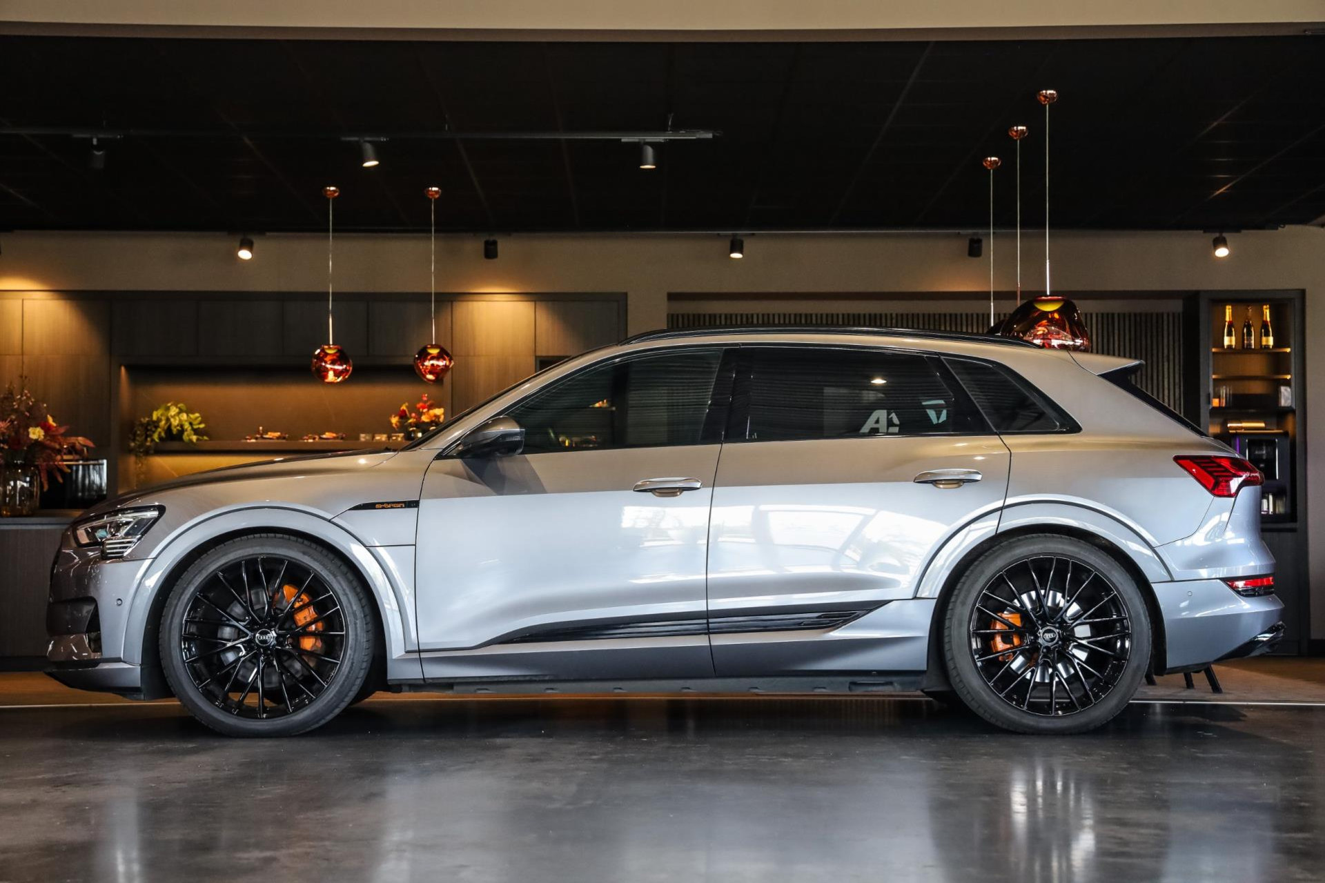 Voertuig is achteraf voorzien op wens van de klant van 22'' MAK wielen in hoogglans Zwart, Chameleon voorruit, Getinte zijramen voor, Oranje remklauwen met E-TRON opschrift, 2 cm verlaging op de luchtvering, Grille en logo's in hoogglans Zwart, S-Line achter diffuser.