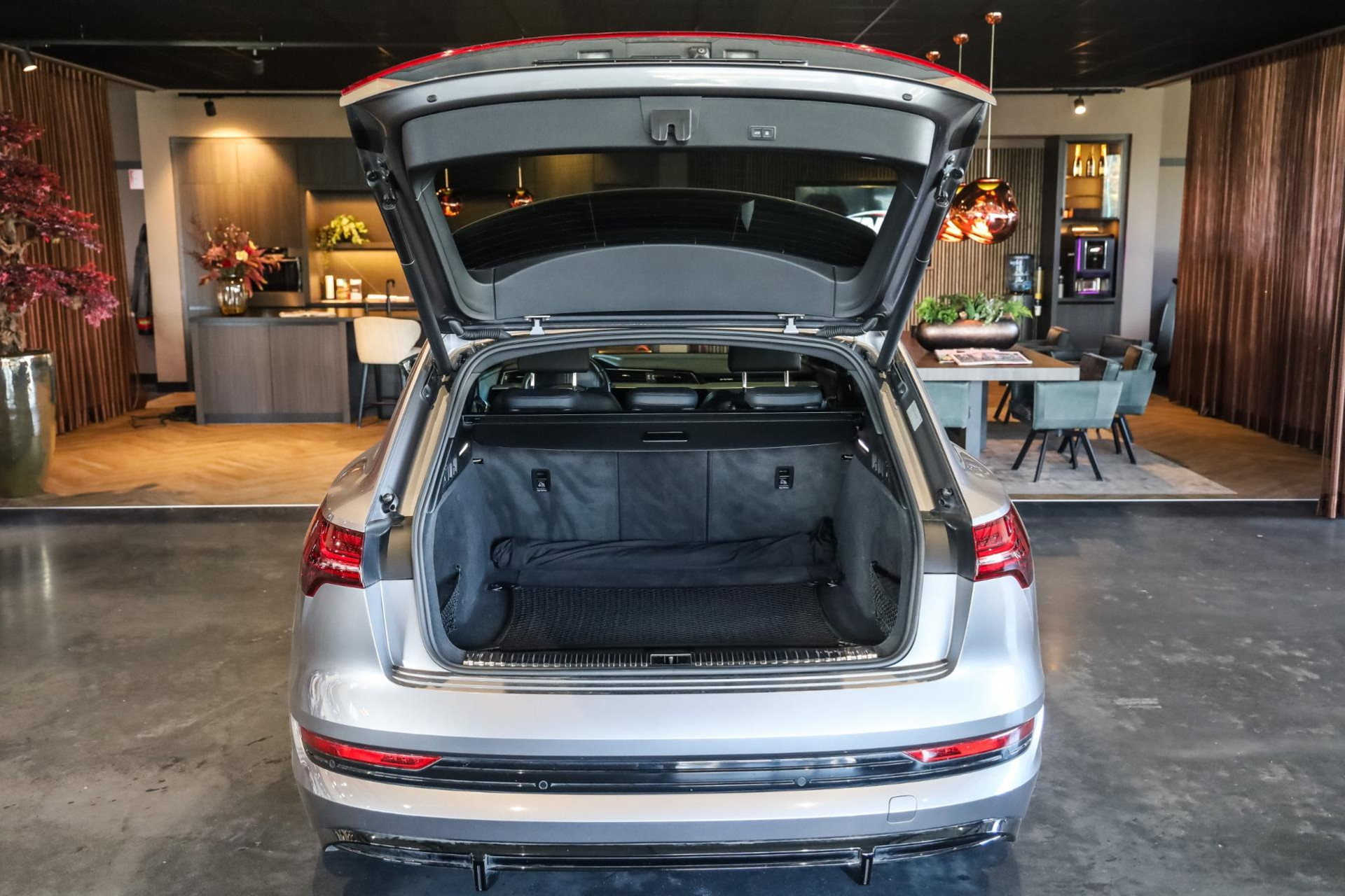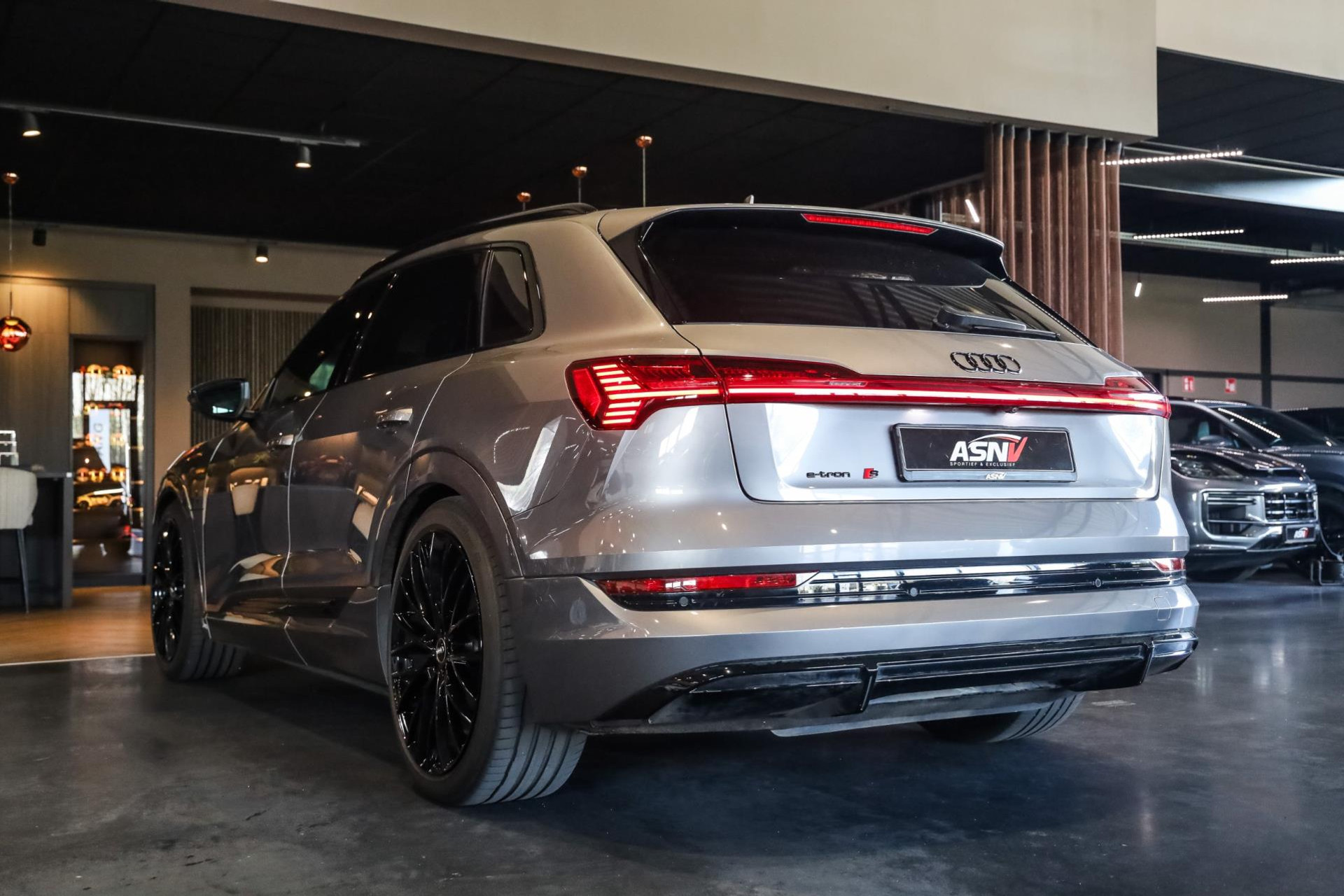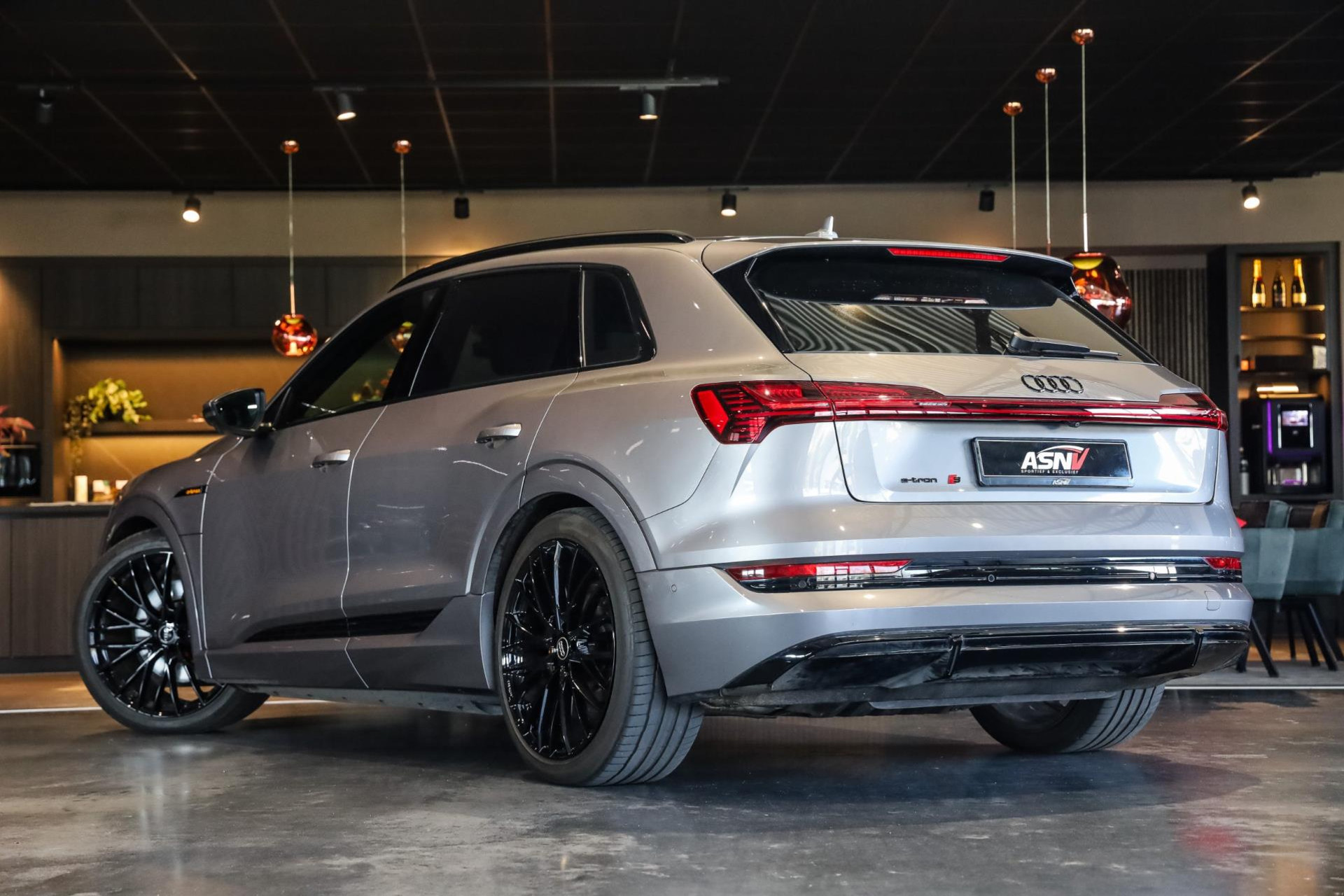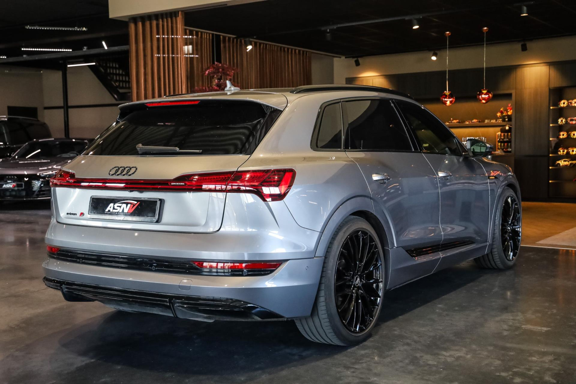Voertuig is achteraf voorzien op wens van de klant van 22'' MAK wielen in hoogglans Zwart, Chameleon voorruit, Getinte zijramen voor, Oranje remklauwen met E-TRON opschrift, 2 cm verlaging op de luchtvering, Grille en logo's in hoogglans Zwart, S-Line achter diffuser.