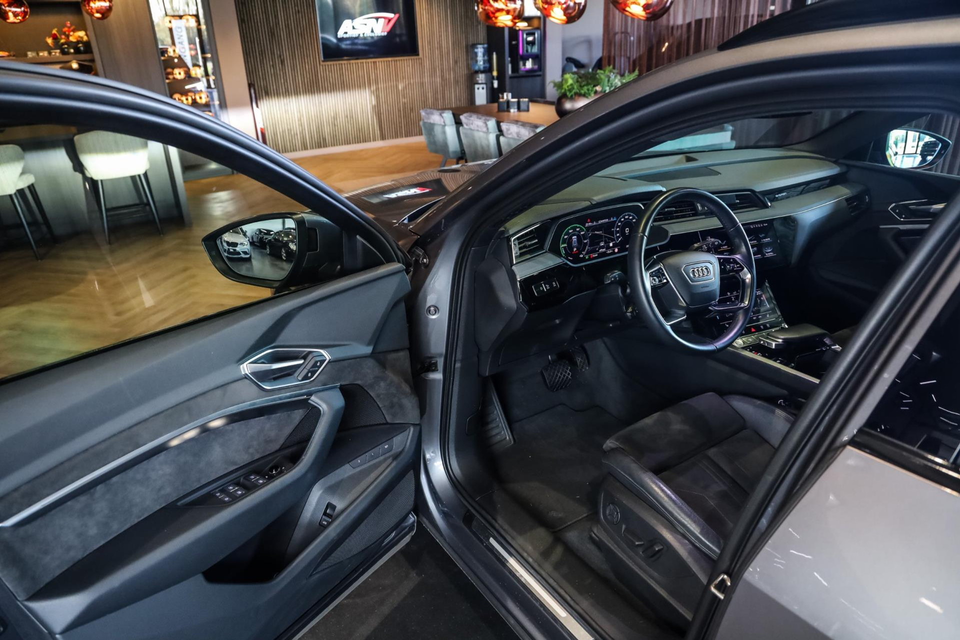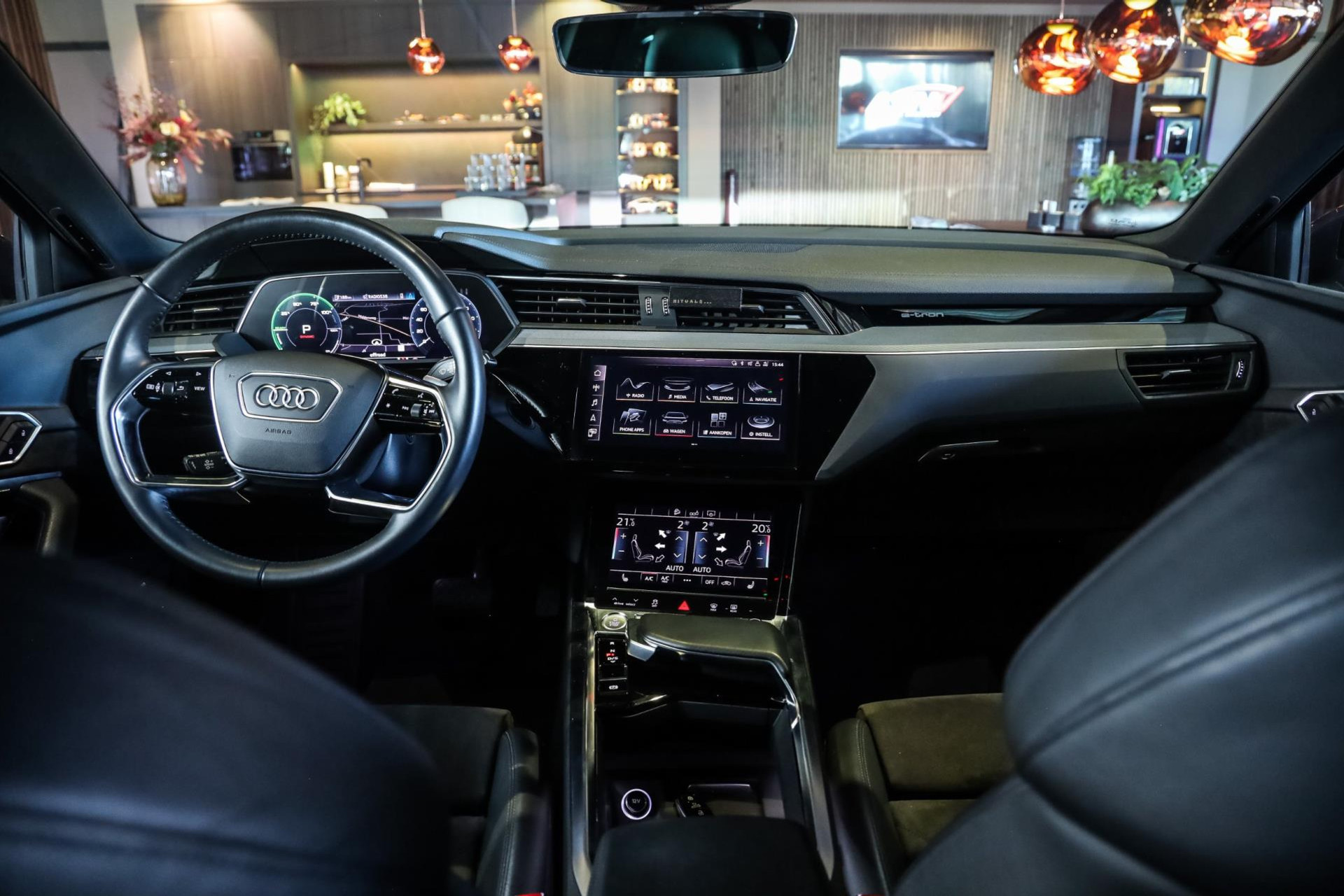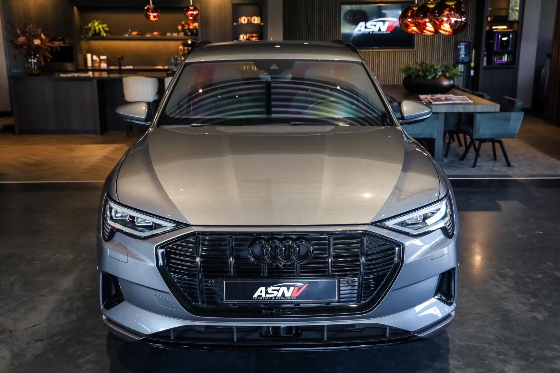 Het betreft hier in nieuwstaat verkerende Audi E-Tron 55 met vele denkbare fabrieksopties zoals: Elektrische verstelbare sport stoelen met verlengbaar zitvlak, Stoelverwarming voor, Climate/Control met 4 zones, Audi Connect met Audi Phone Box, Elektrische achterklep, Drive select met luchtvering, Adaptieve Cruise/Control, Hulppakket Stad/Tour, MMI Navigatie Plus, Virtual cockpit, Sound-systeem Audi, Interieurinrichting: Decordelen in Fijnlak, Ambient interieur verlichting, LED koplampen, Optiek pakket Zwart, Glanspakket, Verduisterde ruiten voor en achter, Zwart stoffen hemel, Bedieningselementen Glasoptiek, incl. uitgebreide Aluminium-look, Etc, Etc.
