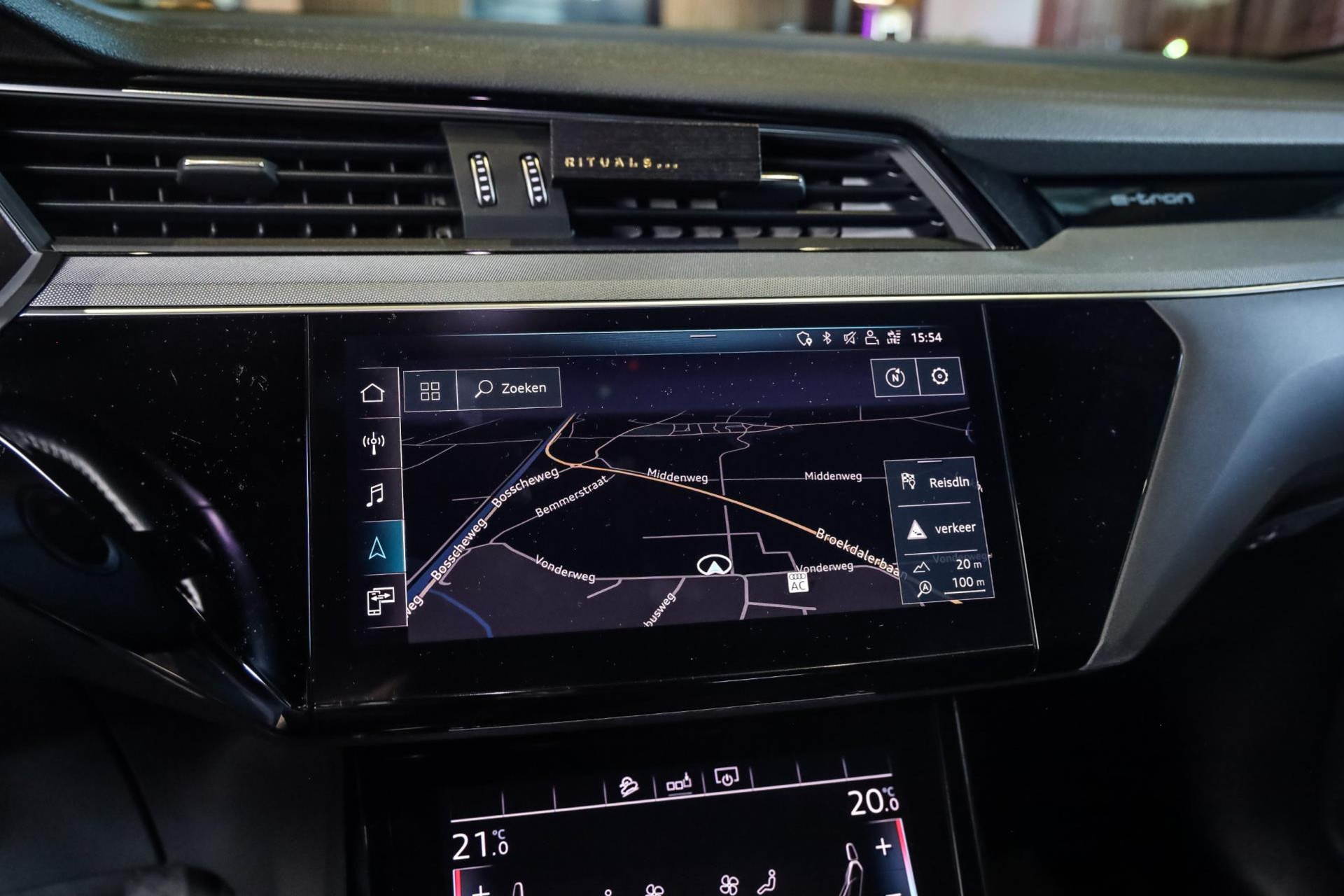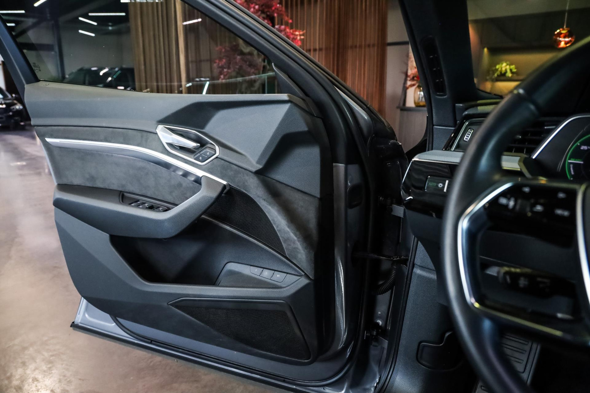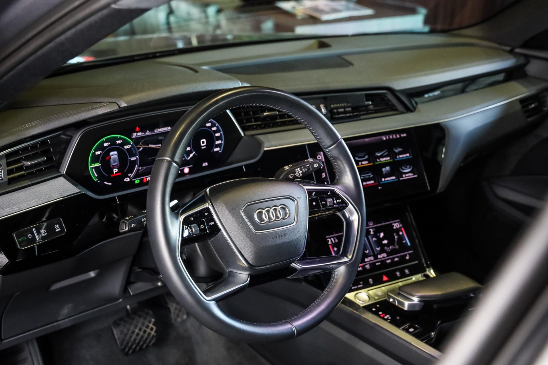 Het betreft hier in nieuwstaat verkerende Audi E-Tron 55 met vele denkbare fabrieksopties zoals: Elektrische verstelbare sport stoelen met verlengbaar zitvlak, Stoelverwarming voor, Climate/Control met 4 zones, Audi Connect met Audi Phone Box, Elektrische achterklep, Drive select met luchtvering, Adaptieve Cruise/Control, Hulppakket Stad/Tour, MMI Navigatie Plus, Virtual cockpit, Sound-systeem Audi, Interieurinrichting: Decordelen in Fijnlak, Ambient interieur verlichting, LED koplampen, Optiek pakket Zwart, Glanspakket, Verduisterde ruiten voor en achter, Zwart stoffen hemel, Bedieningselementen Glasoptiek, incl. uitgebreide Aluminium-look, Etc, Etc.