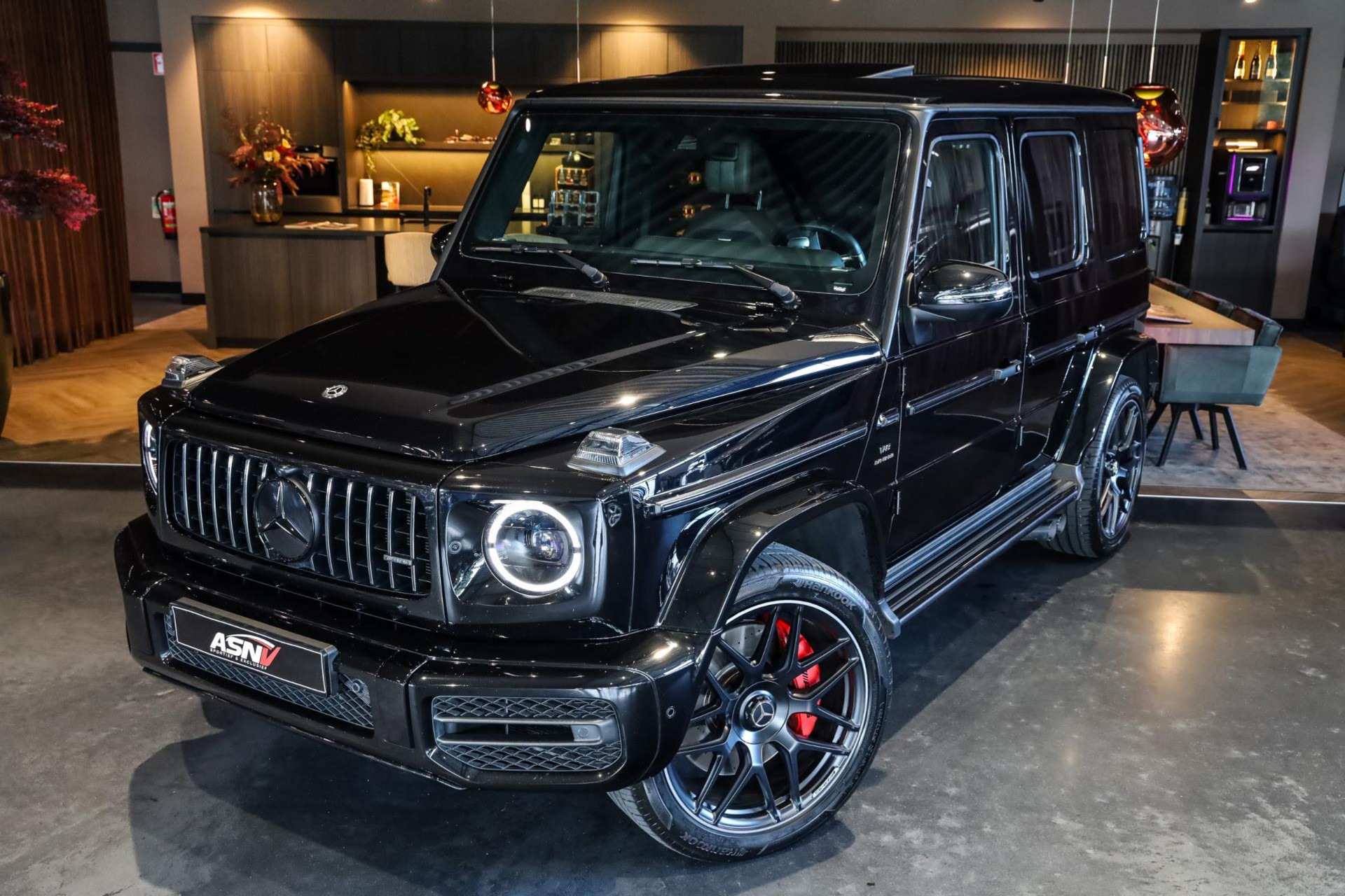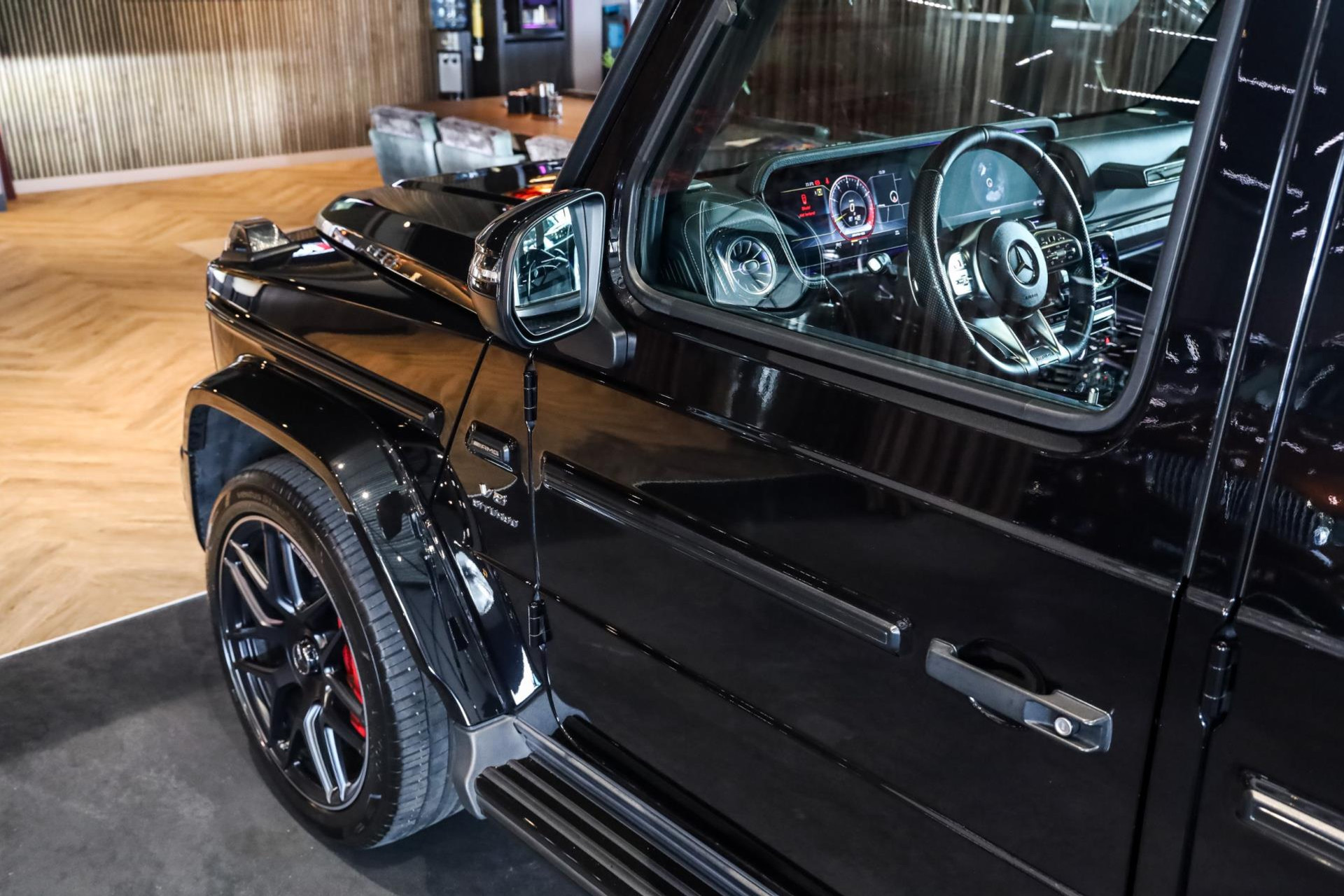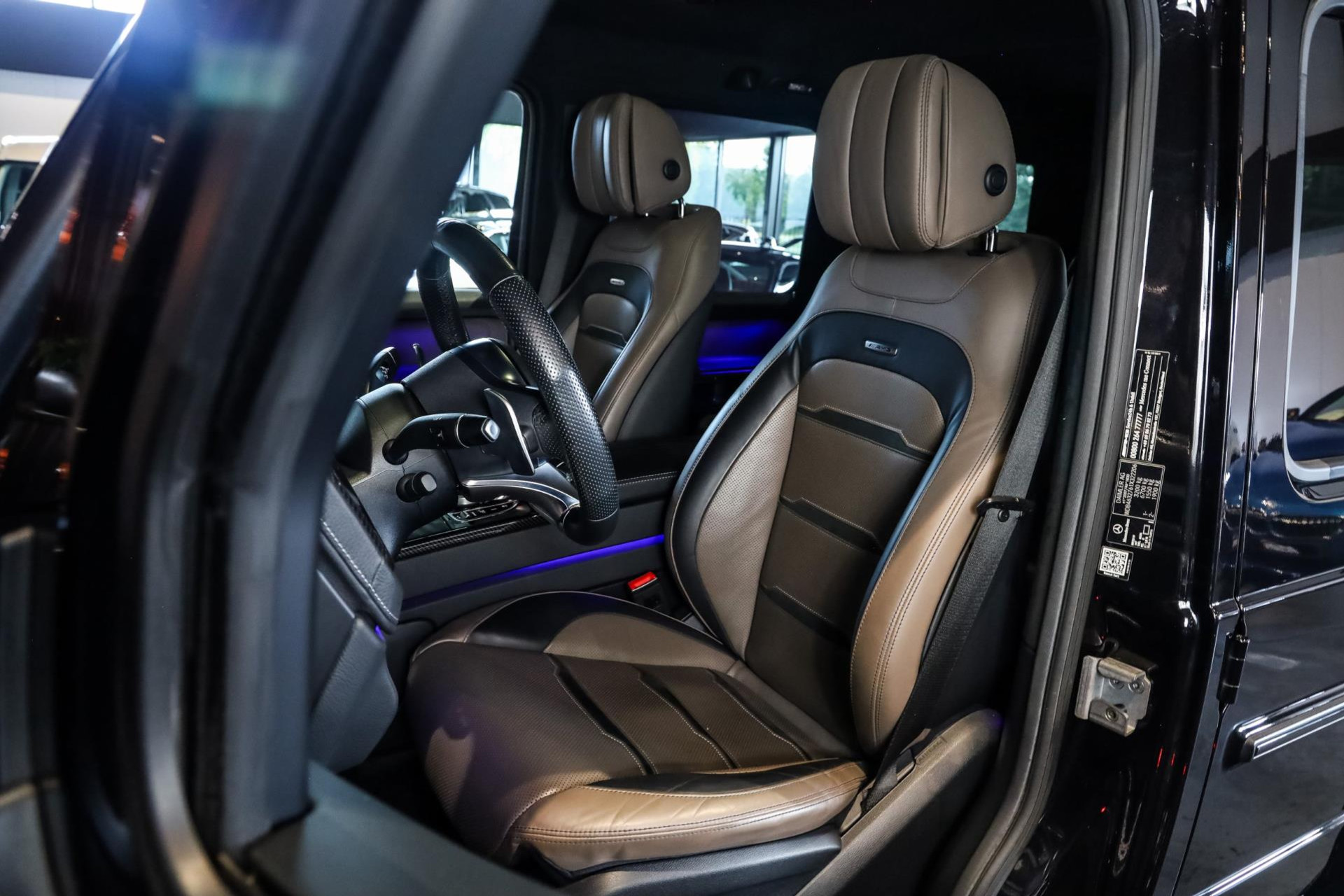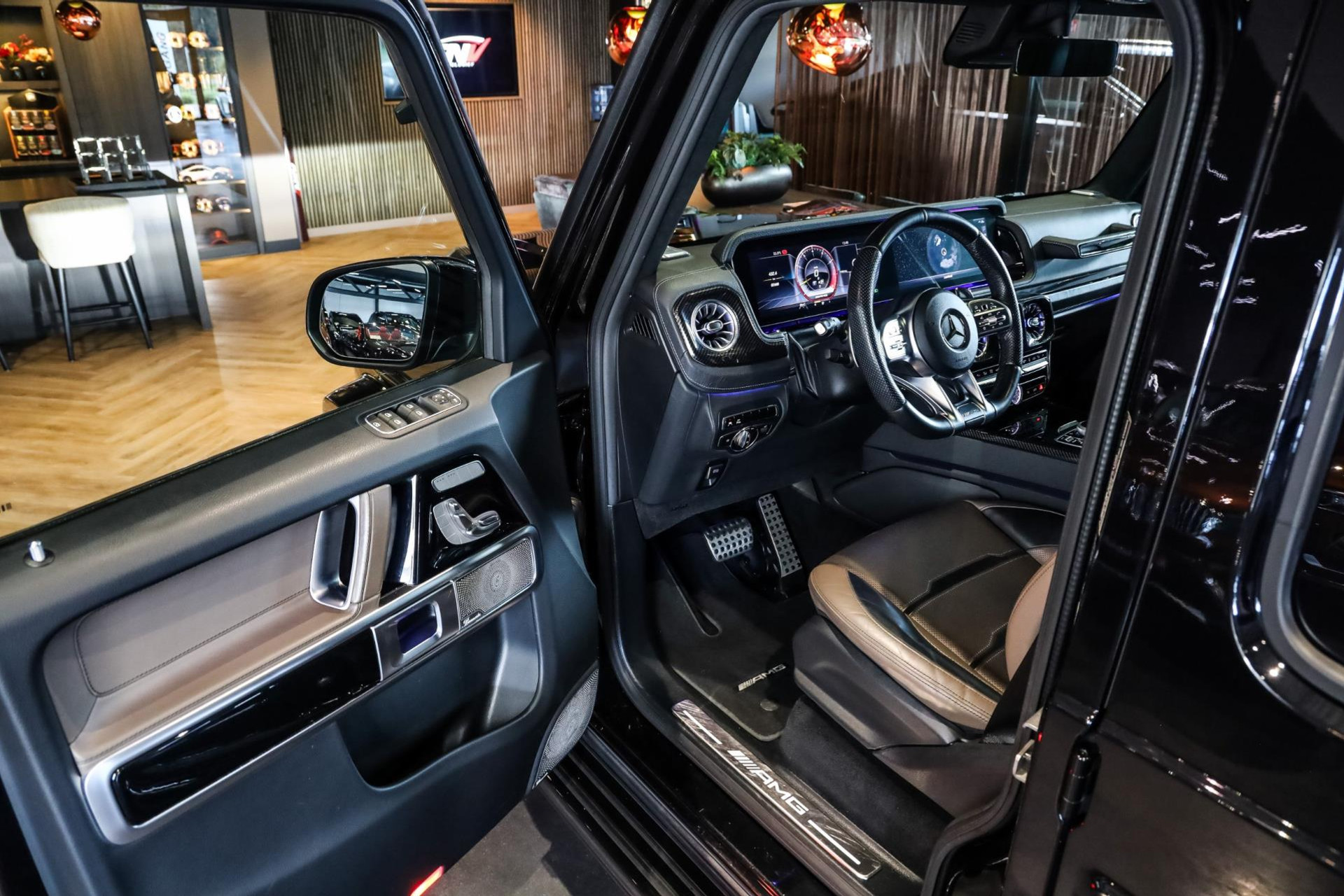 Deze G63 in de prachtige kleur Obsidian Zwart Metallic met Zwart/Bruin lederen interieur verkeert in absolute nieuwstaat, en is voorzien van vele denkbare fabrieksopties zoals: Comand navigatiesysteem van Europa met grootbeeld kleurenscherm, Cruisecontrol met afstandsregeling-Distronic Plus en dodehoek assistent, Rijassistent-systeem actieve Rijbaanassistentie, DAB Tuner, Driespaaks AMG Performance-stuurwiel van leder, Elektrisch verstelbare Comfortstoelen, Parkeerpakket met achteruitrijcamera en 360 camera, Nightpakket (hoogglanzende onderdelen), Sportuitlaat systeem (BRABUS), Schuif/-Kanteldak, Standkachel, Lichtmetalen velgen 22'' (AMG, Kruisspaken, matzwart), Burmester Sound Systeem, MultiBeam LED koplampen, Remzadels Rood gespoten, Etc, Etc.