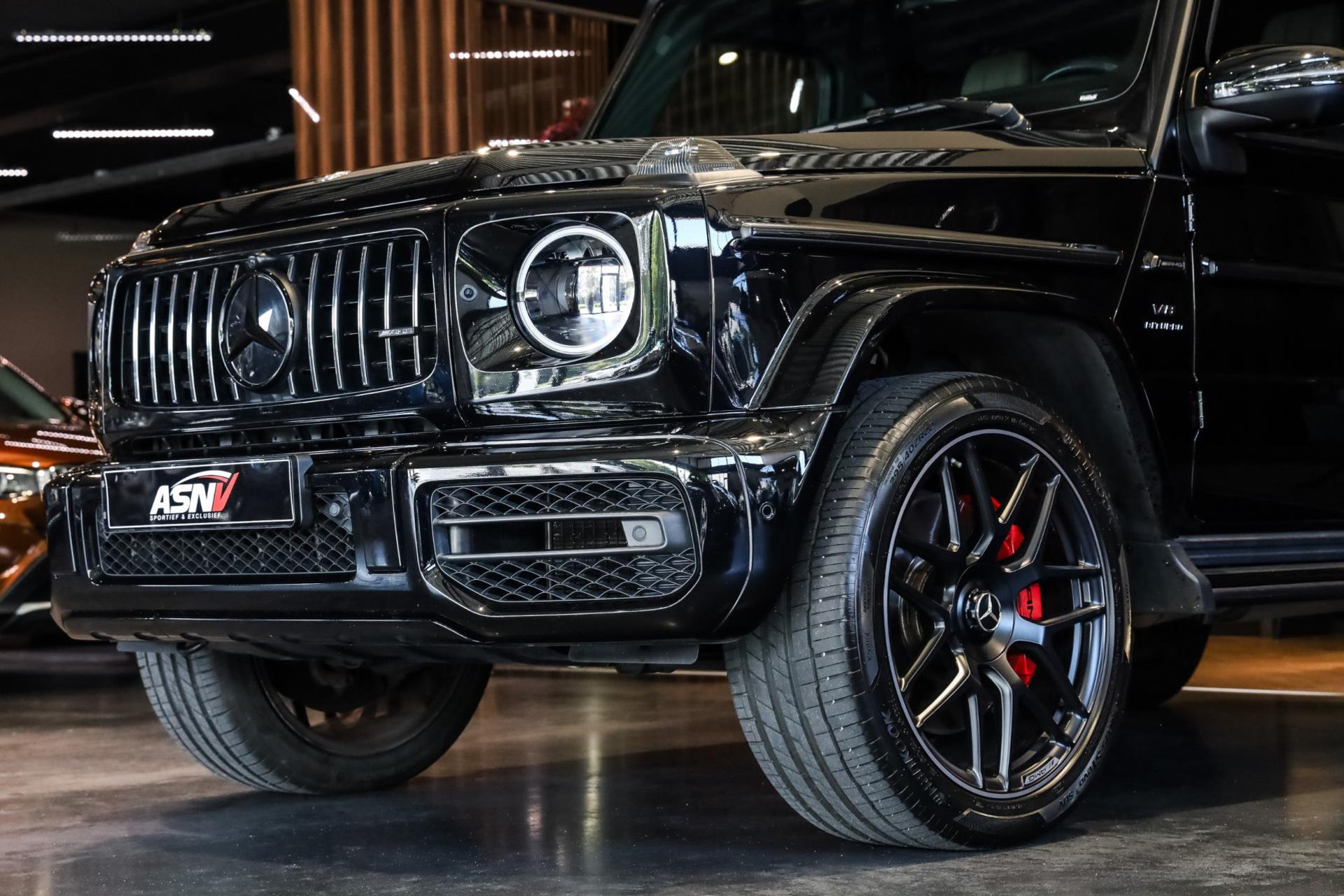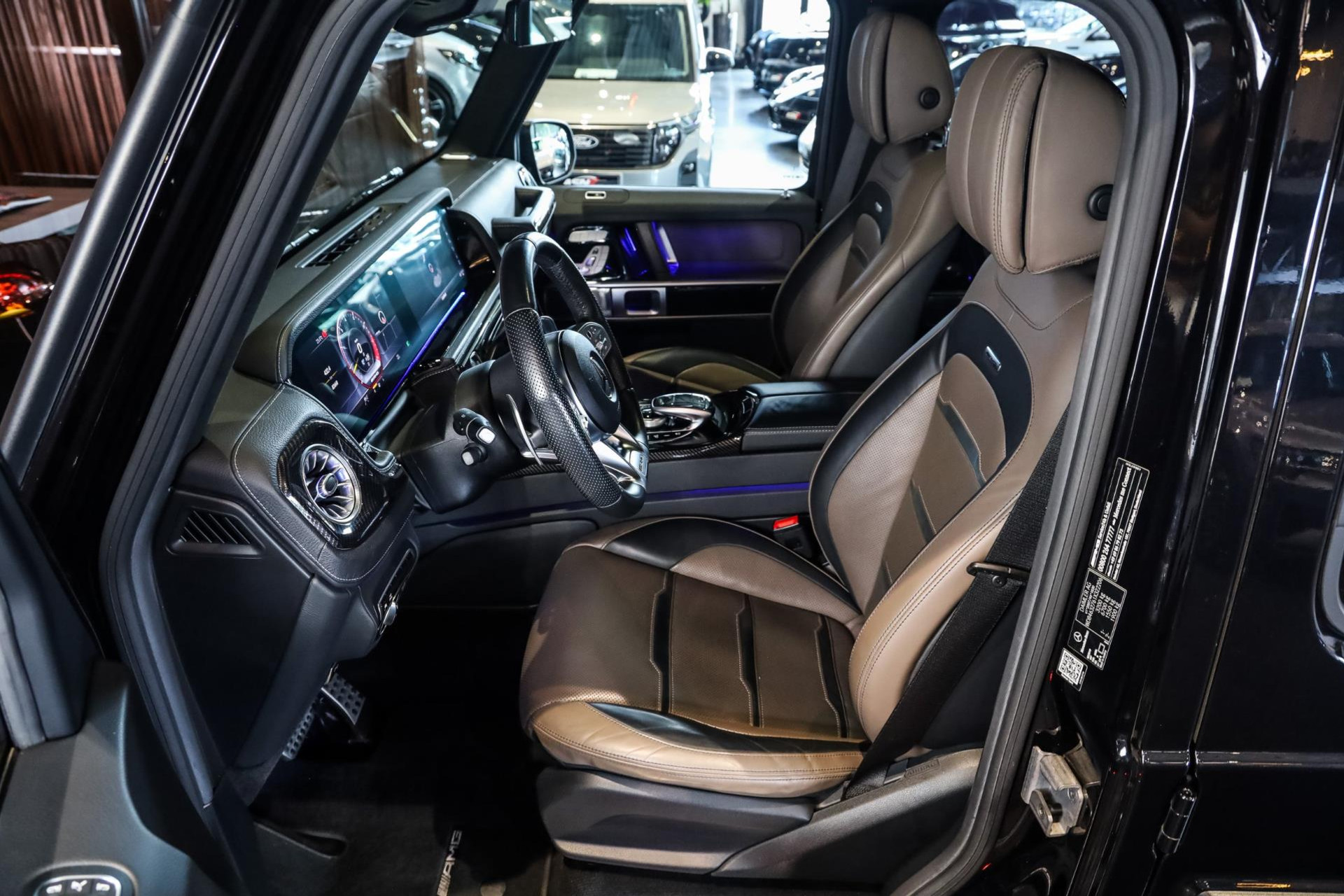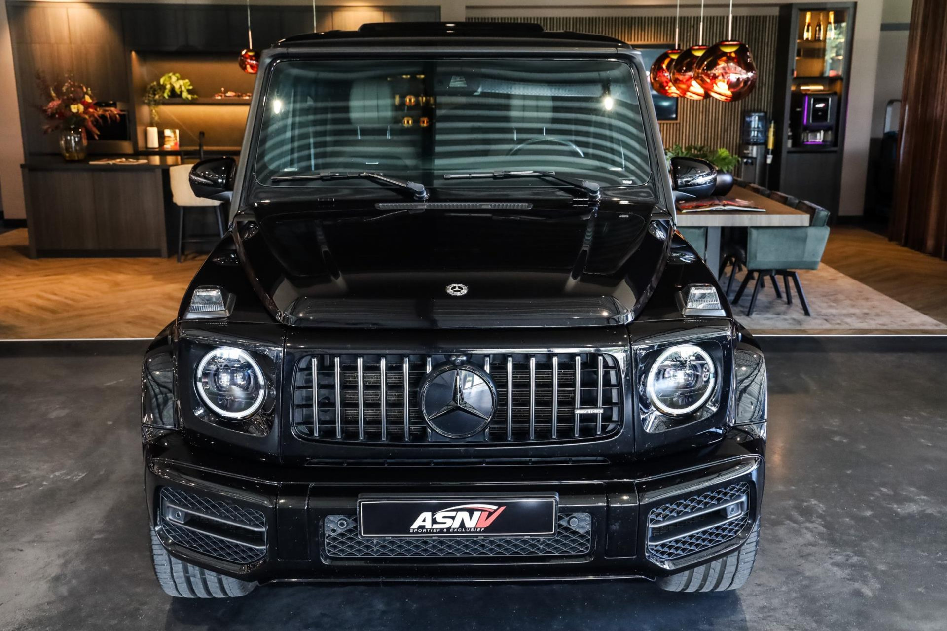 Deze G63 in de prachtige kleur Obsidian Zwart Metallic met Zwart/Bruin lederen interieur verkeert in absolute nieuwstaat, en is voorzien van vele denkbare fabrieksopties zoals: Comand navigatiesysteem van Europa met grootbeeld kleurenscherm, Cruisecontrol met afstandsregeling-Distronic Plus en dodehoek assistent, Rijassistent-systeem actieve Rijbaanassistentie, DAB Tuner, Driespaaks AMG Performance-stuurwiel van leder, Elektrisch verstelbare Comfortstoelen, Parkeerpakket met achteruitrijcamera en 360 camera, Nightpakket (hoogglanzende onderdelen), Sportuitlaat systeem (BRABUS), Schuif/-Kanteldak, Standkachel, Lichtmetalen velgen 22'' (AMG, Kruisspaken, matzwart), Burmester Sound Systeem, MultiBeam LED koplampen, Remzadels Rood gespoten, Etc, Etc.