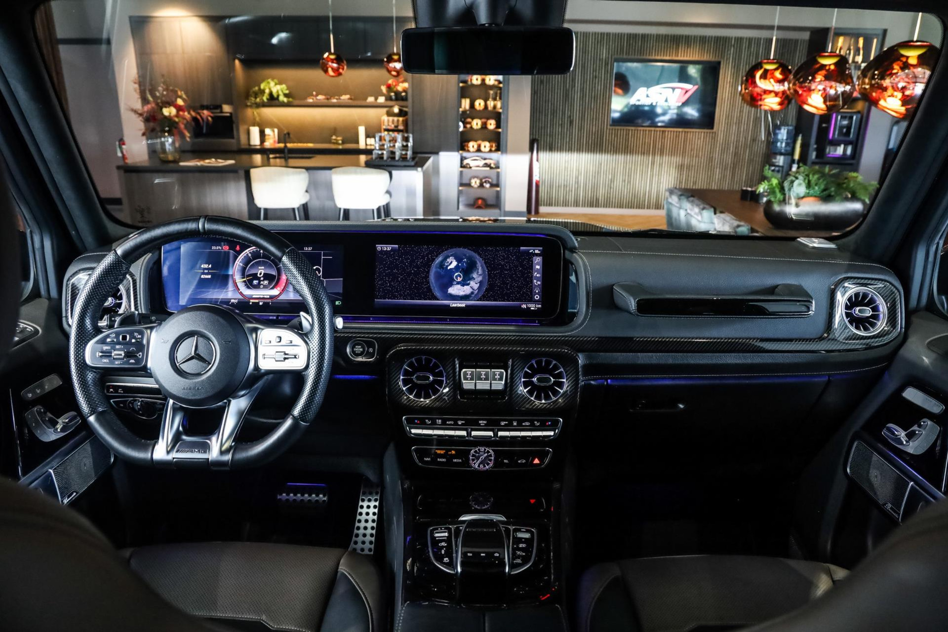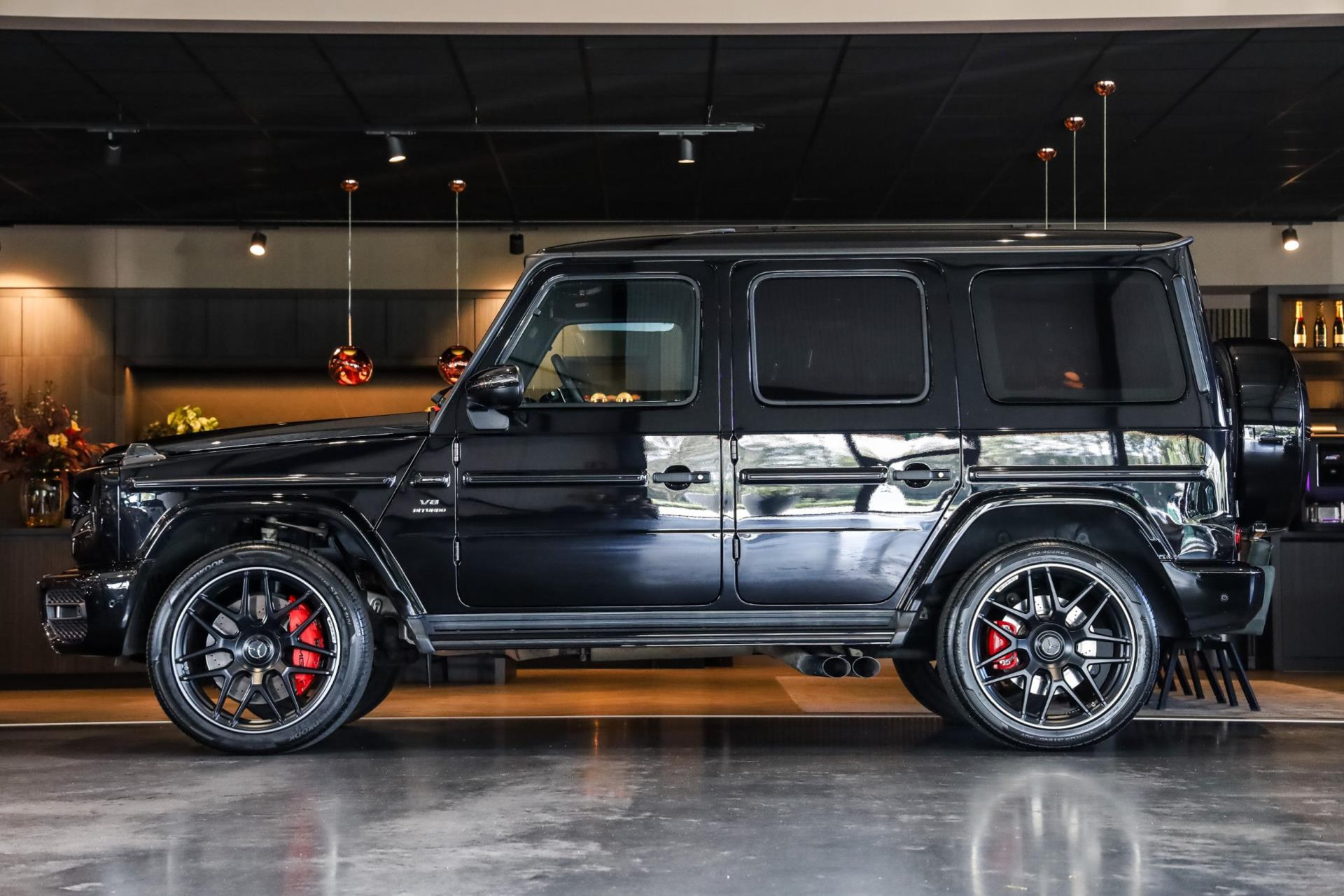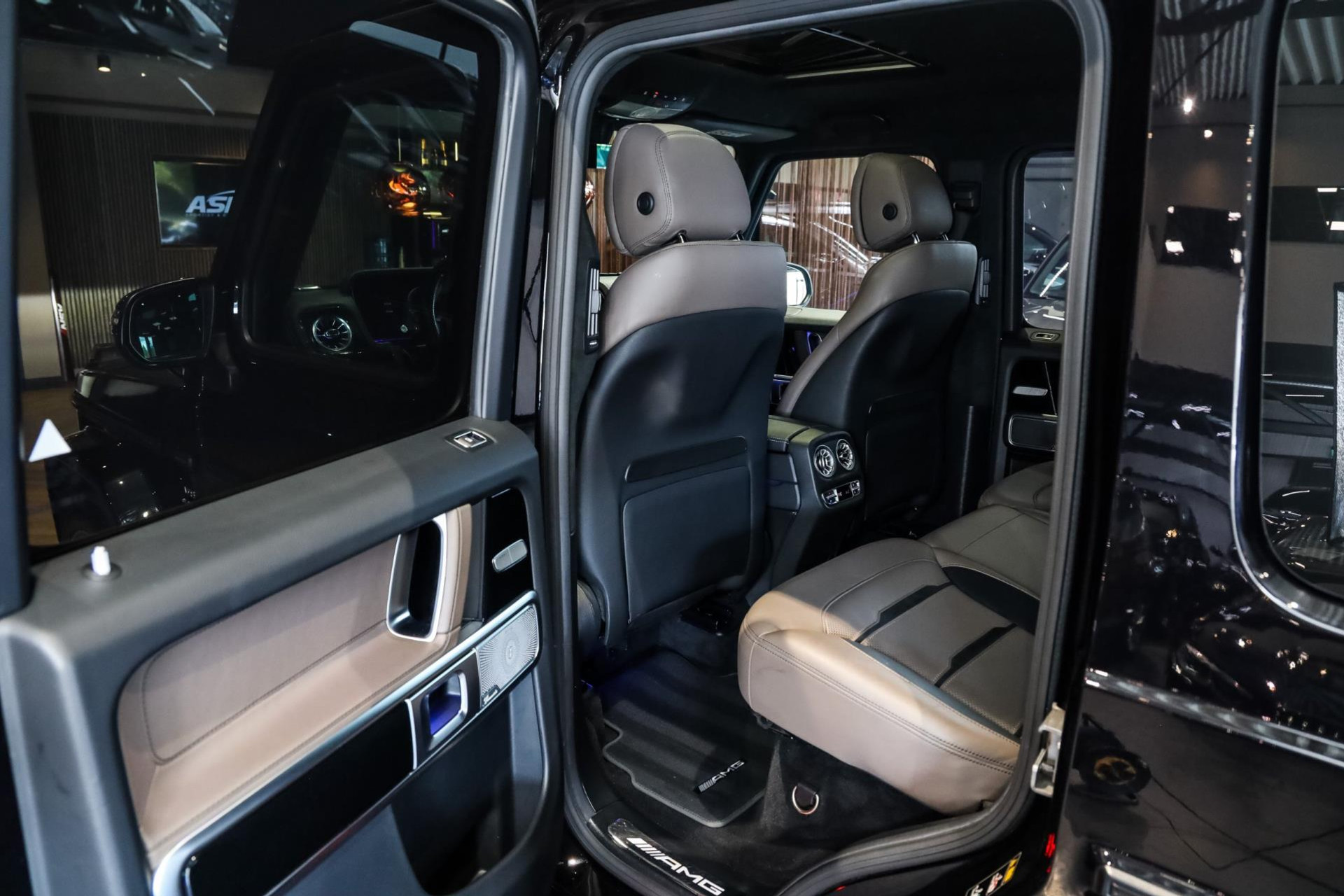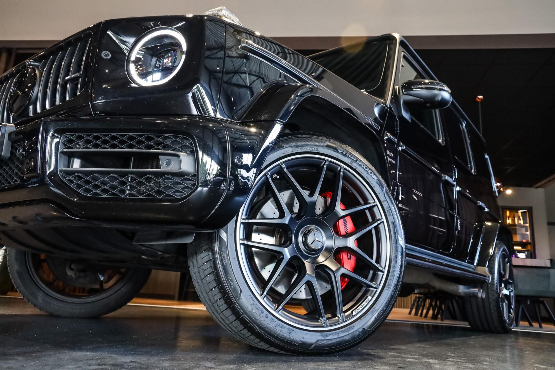 Deze G63 in de prachtige kleur Obsidian Zwart Metallic met Zwart/Bruin lederen interieur verkeert in absolute nieuwstaat, en is voorzien van vele denkbare fabrieksopties zoals: Comand navigatiesysteem van Europa met grootbeeld kleurenscherm, Cruisecontrol met afstandsregeling-Distronic Plus en dodehoek assistent, Rijassistent-systeem actieve Rijbaanassistentie, DAB Tuner, Driespaaks AMG Performance-stuurwiel van leder, Elektrisch verstelbare Comfortstoelen, Parkeerpakket met achteruitrijcamera en 360 camera, Nightpakket (hoogglanzende onderdelen), Sportuitlaat systeem (BRABUS), Schuif/-Kanteldak, Standkachel, Lichtmetalen velgen 22'' (AMG, Kruisspaken, matzwart), Burmester Sound Systeem, MultiBeam LED koplampen, Remzadels Rood gespoten, Etc, Etc.