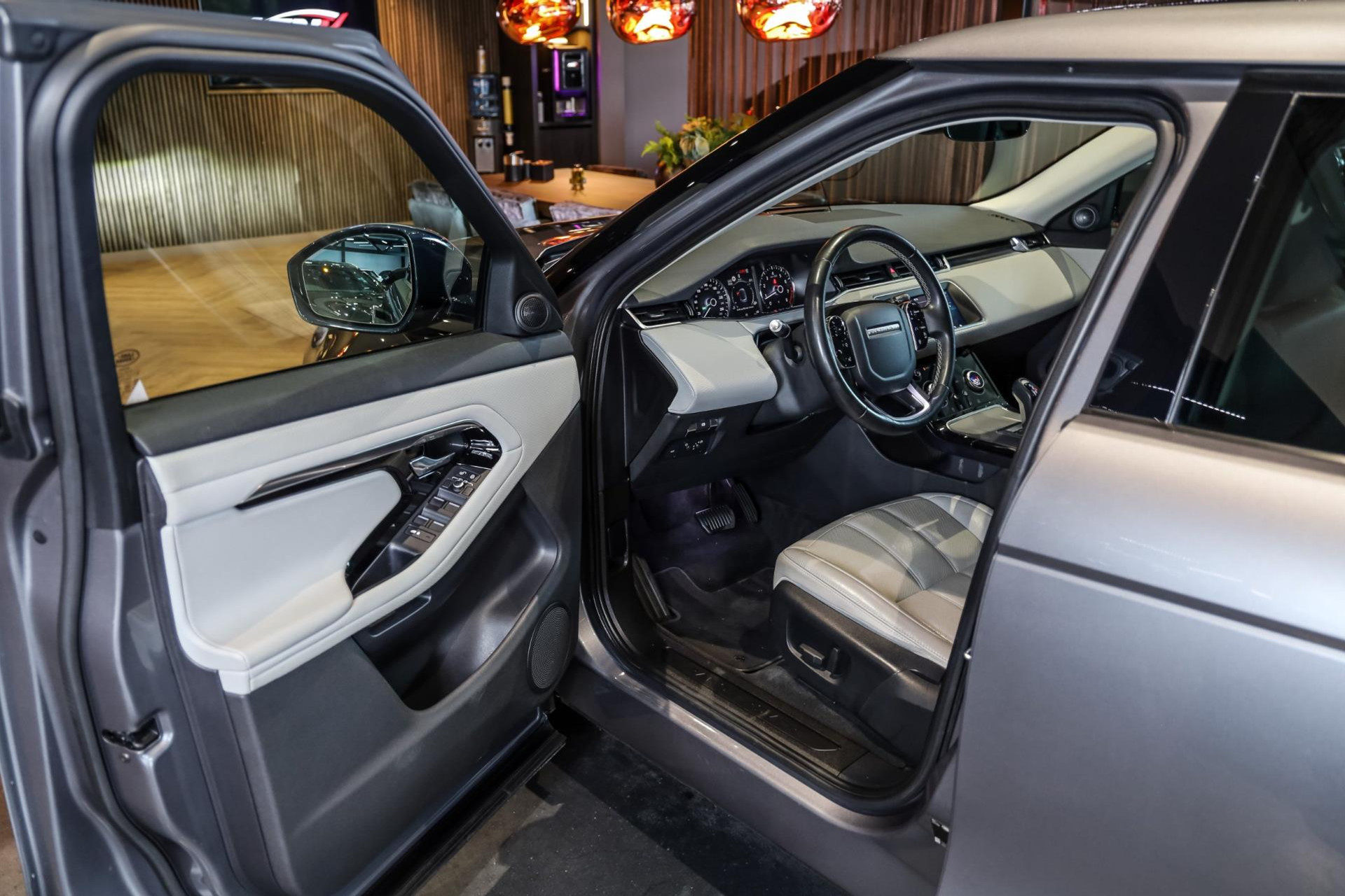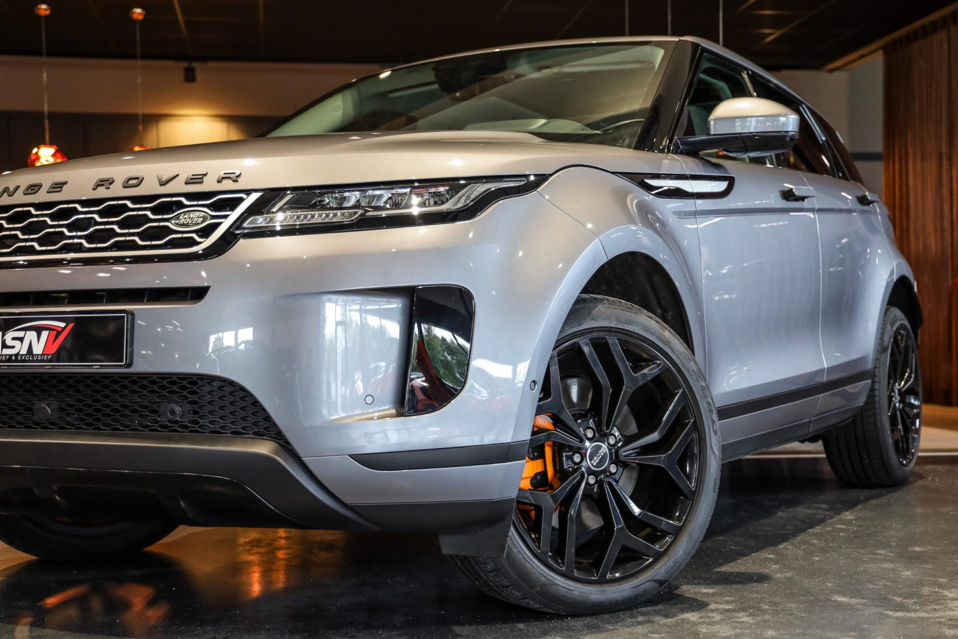 Deze Evoque verkeert in absolute nieuwstaat, en is voorzien van vele opties zoals: Beige lederen sportstoelen elektrische verstelbaar, Black/Optiek pakket, Permanente vierwielaandrijving, Ambiance verlichting, Head/Up Display, Lane/Assist, Stuurverwarming + Stoelverwarming, DAB tuner, Navigatie grootbeeld touchscreen, LED koplampen, Elektrische achterklep, 20'' lichtmetalen velgen (zwart), Winterpakket, Panoramadak, Remzadels in Oranje gespoten, Etc, Etc.
